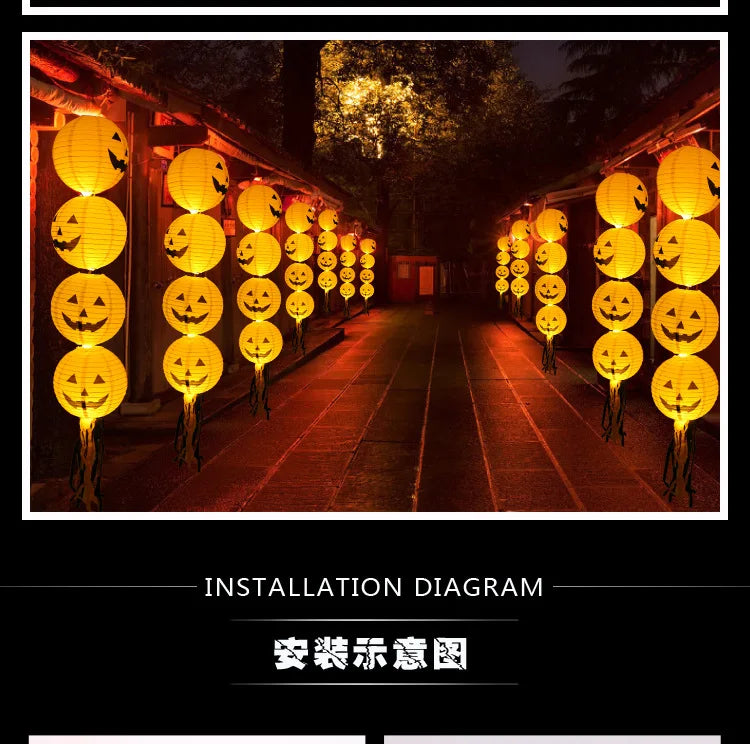 Portable hanging pumpkin paper lanterns of horrible pattern decor.